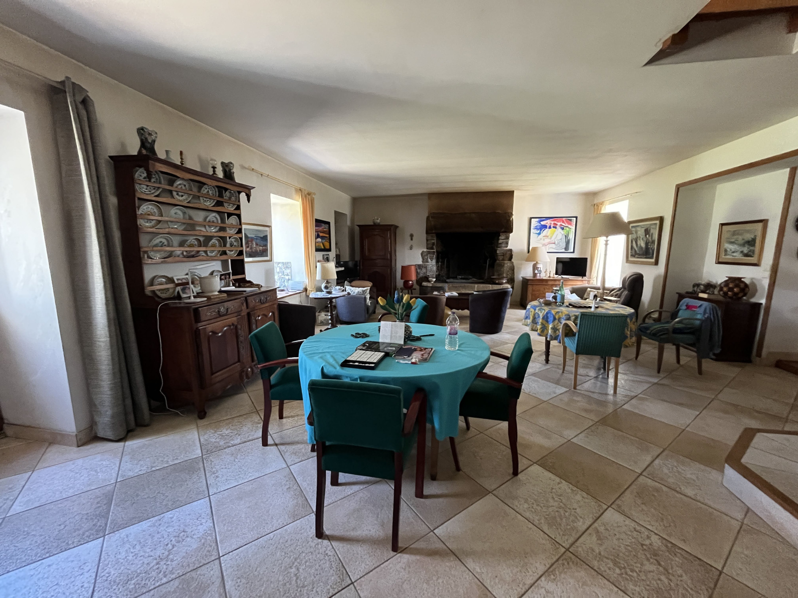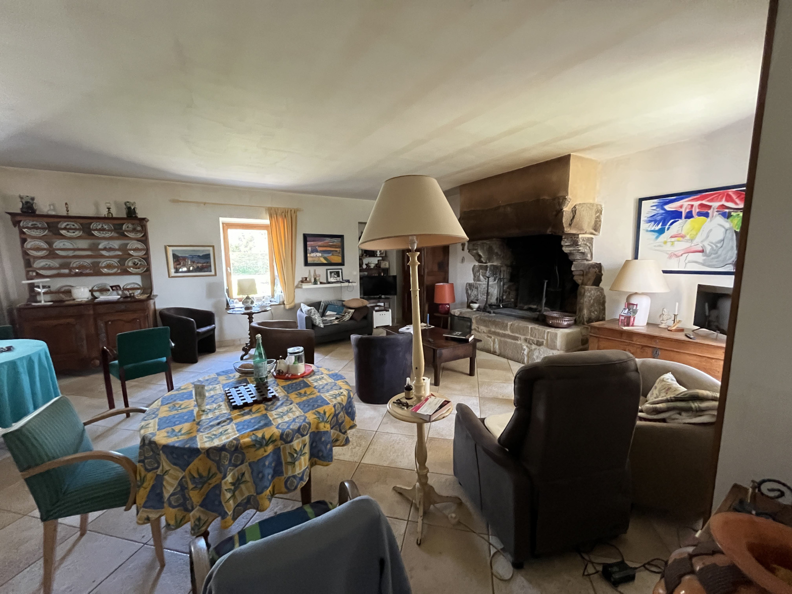 Grandes dépendances : un double garage (2 voitures ou bateau) avec grenier, une pièce et une petite chambre au dessus et un carport bucher ou autre, un autre garage semi fermé complètent ce bien. Un puits de chaque côté de la maison (avec pompe) et une très grande cour, joli jardin et beaux arbres, entièrement clos de murs en pierres, sans vis à vis et très au calme.
