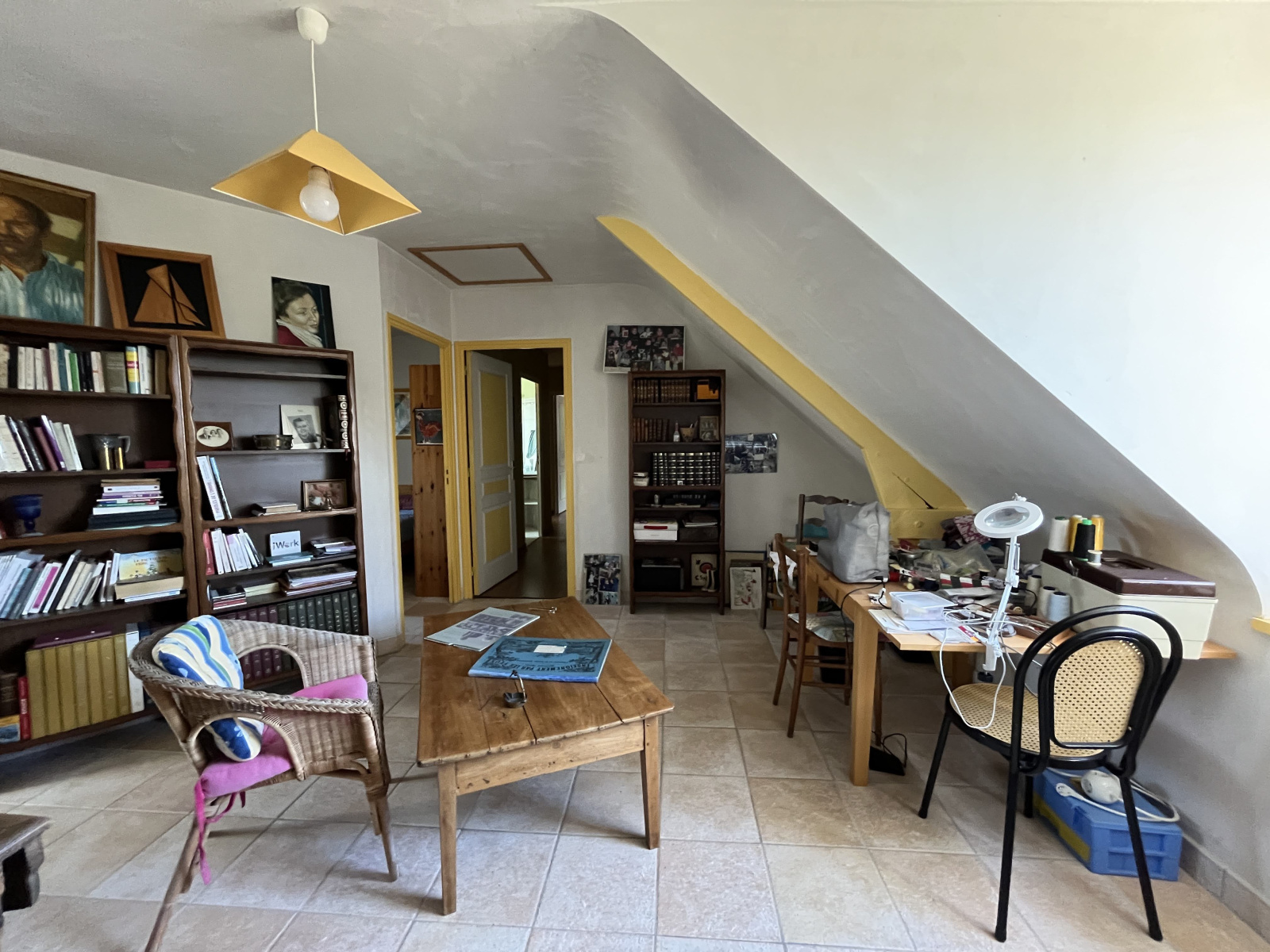 A l'étage : 2 belles chambres sur parquet, une salle de bain et wc, en continuité un séjour avec coin cuisine, deux autres chambres, une salle de bain et un wc qui forment un appartement avec un accès indépendant possible.